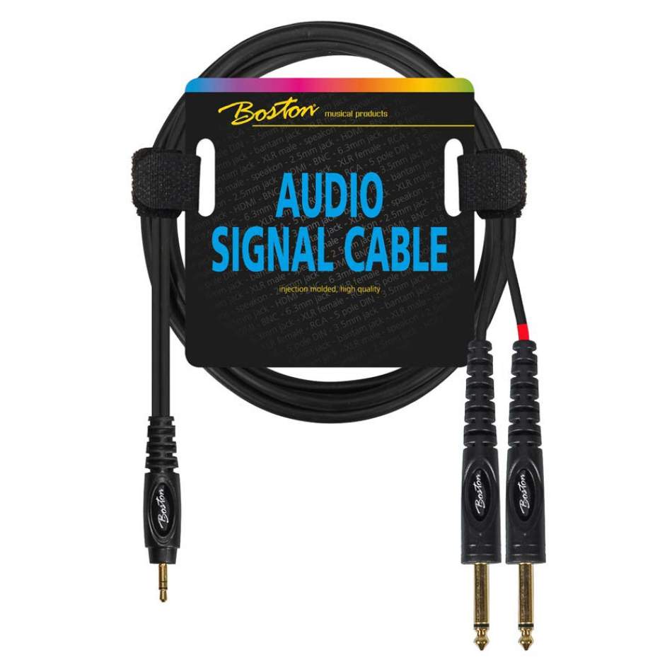 Audio signal kábel, 3,5 mm jack stereo - 2 x 6,3 mm jack mono, 0,30 m