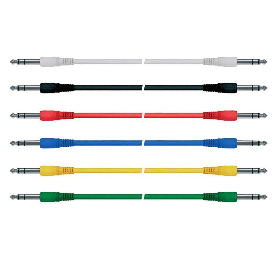 Prepojovací kábel/patch, stereo, 6 ks, 6 farieb, zaliate pravouhlé jacky, 0,90 m
