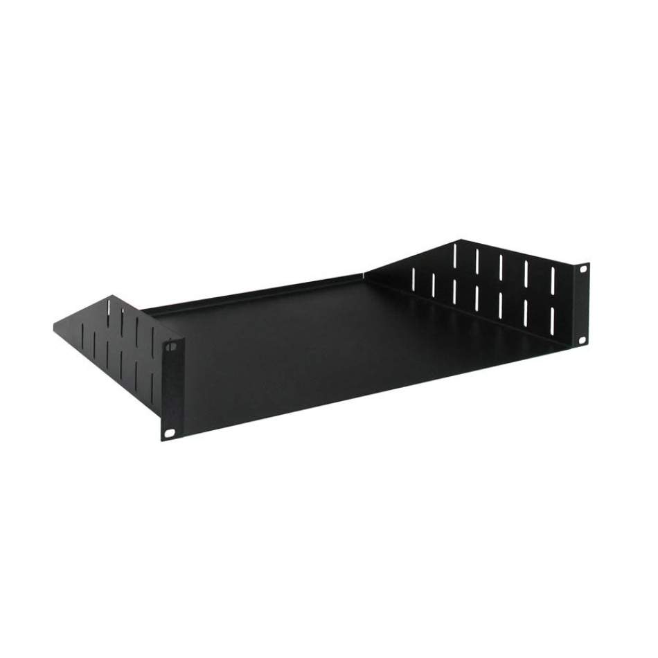 19“ rack polička, kovová, čierna, 2 HE