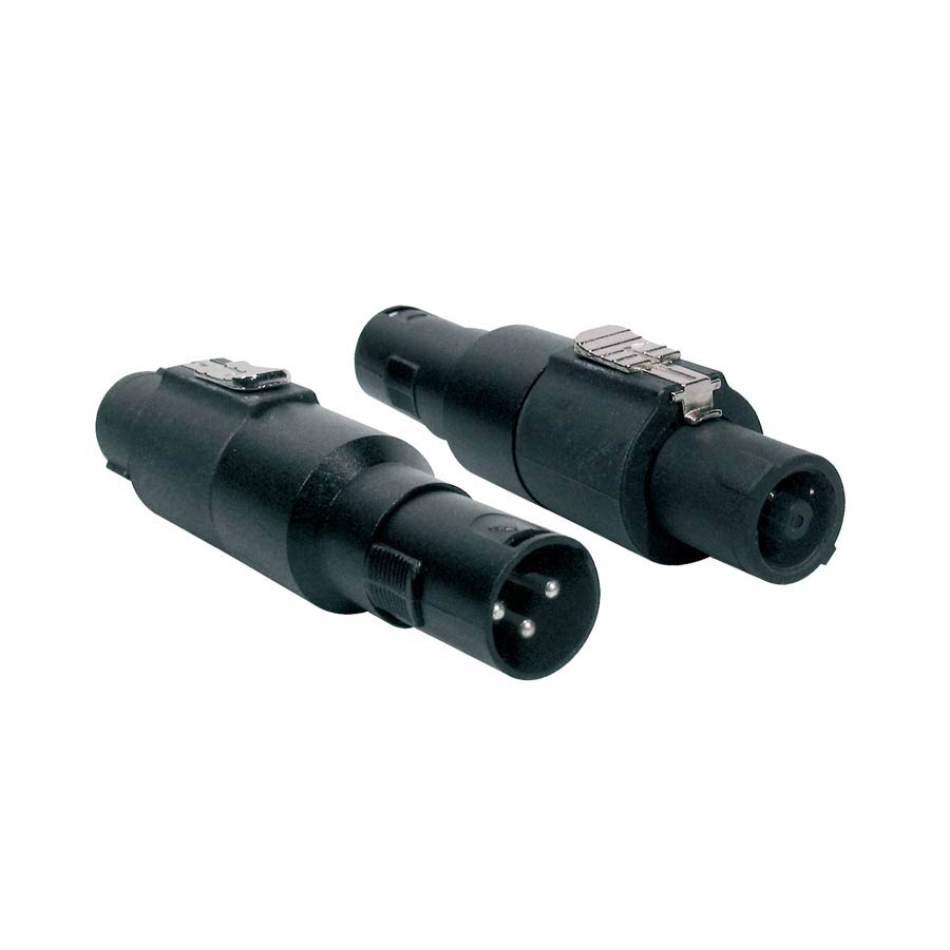 Redukcia/prepojka, speakon (reproduktorový kábel) 4-pólový samička, čierny kov, XLR samec