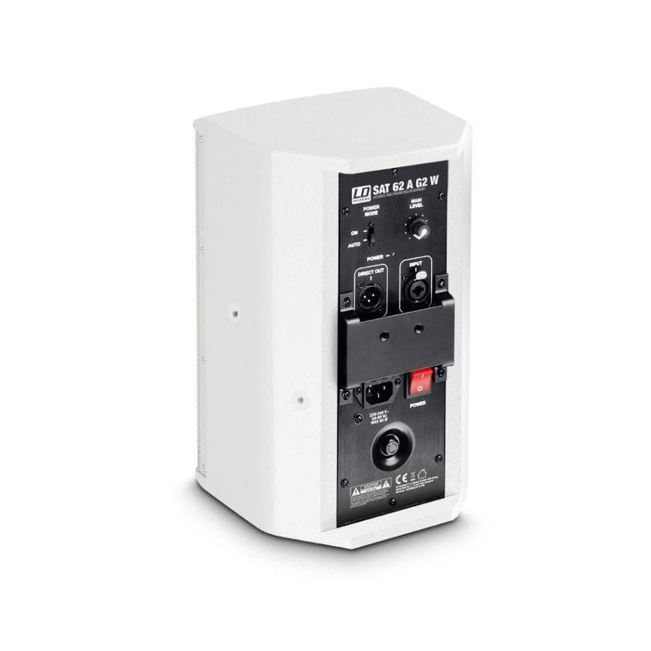 Dizajn bassreflexu je osadený 6,5" wooferom a 1" výškovým reproduktorom s vlnovodom, ktorý je poháňaný výkonovým zosilňovačom triedy AB s výkonom 50 W RMS s nadprúdovou ochranou. Vstupom je kombinovaný XLR konektor, ktorý umožňuje opakovanie signálu. Reprodukcia zvuku je vyvážená a dynamická v celom frekvenčnom rozsahu 55 Hz - 20 kHz a dosahuje maximálny akustický tlak 108 dB. SAT62AG2 je vybavený prepínateľným režimom úspory energie, ktorý sa automaticky prepína do pohotovostného režimu, ak po dobu 3 minút nie je pritomný signál.