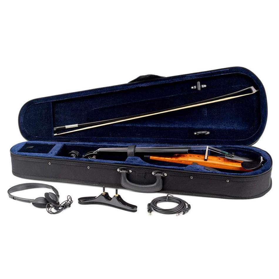 Elektrické husle, moderný dizajn, Shadow aktívny snímač, s púzdrom, šláčikom, slúchadlami a ramennou opierkou, farebné prevedenie: prírodné