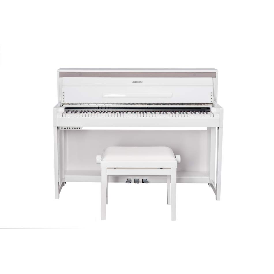Digitálne piano, 88 klávesov, plne vyvážená 3-senzorová kladivková mechanika s Escapement, drevená klaviatúra, slonovinový povrch kláves, 80W reproduktory, s PSU, biele lesklé prevedenie