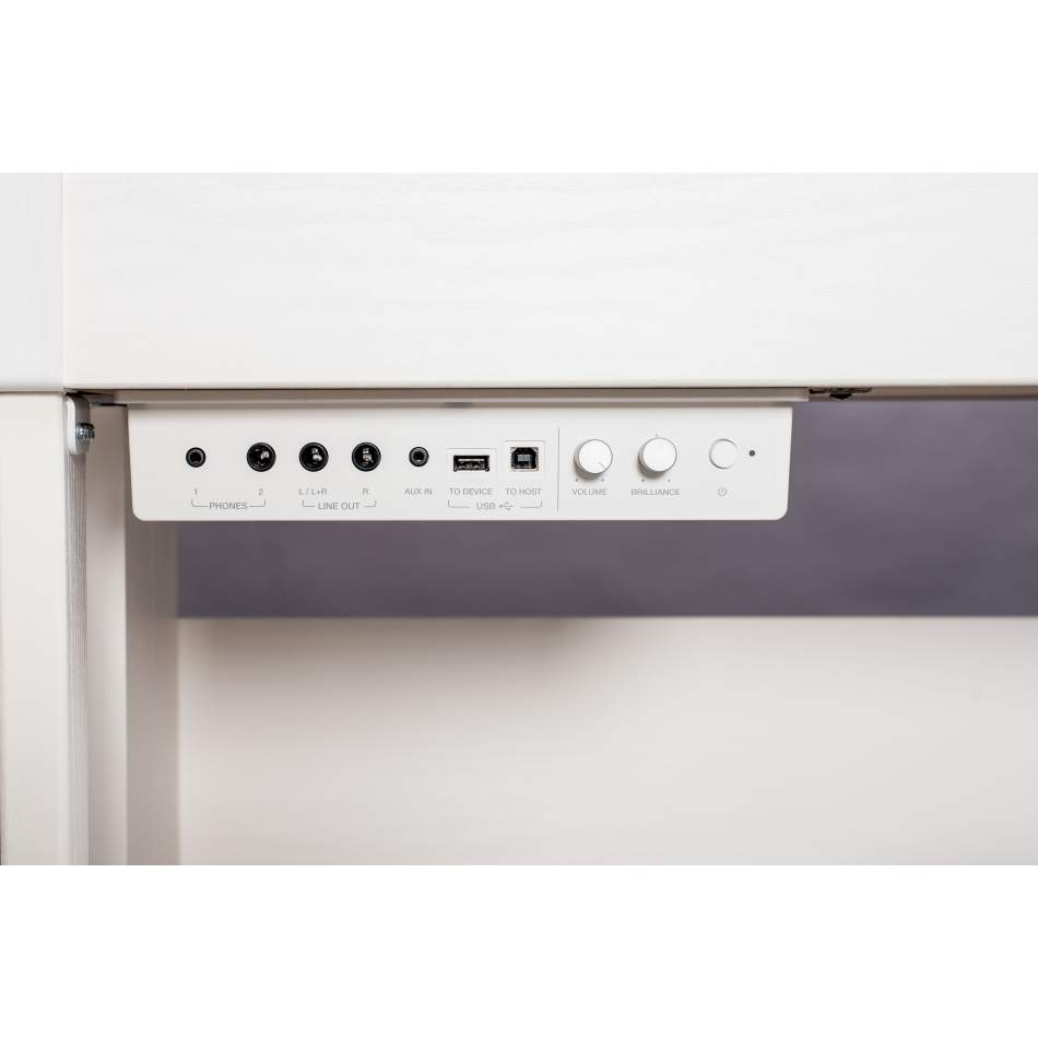 | Pripojenia | USB-A (Device), USB-B (MIDI & Audio), 2 x slúchadlá 6,3mm jack a 3,5mm jack, AUX IN 3,5mm, AUX OUT 2 x 6,3mm (L/L+R, R), pedále (sustain/soft/sostenuto) |