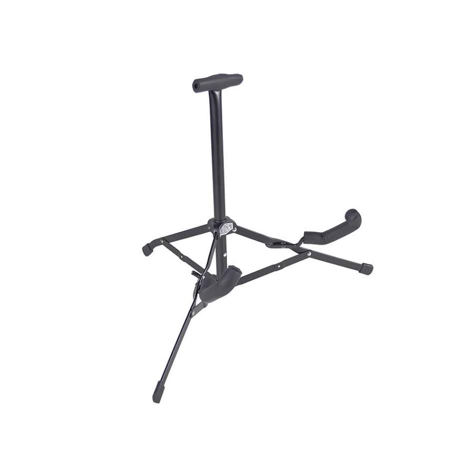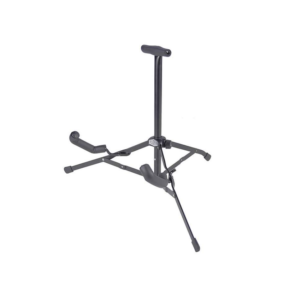 Stojan na elekrickú gitaru, skladací, kovový, čierny, s púzdrom
