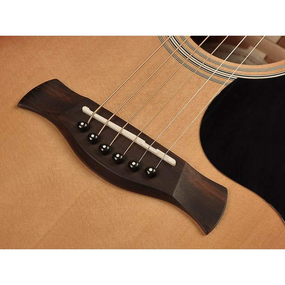 Masívna smreková Sitka vrchná doska v kombinácii s mahagónom na zadnej doske a luboch vedie k ľahkému, teplému a živému tónmu.