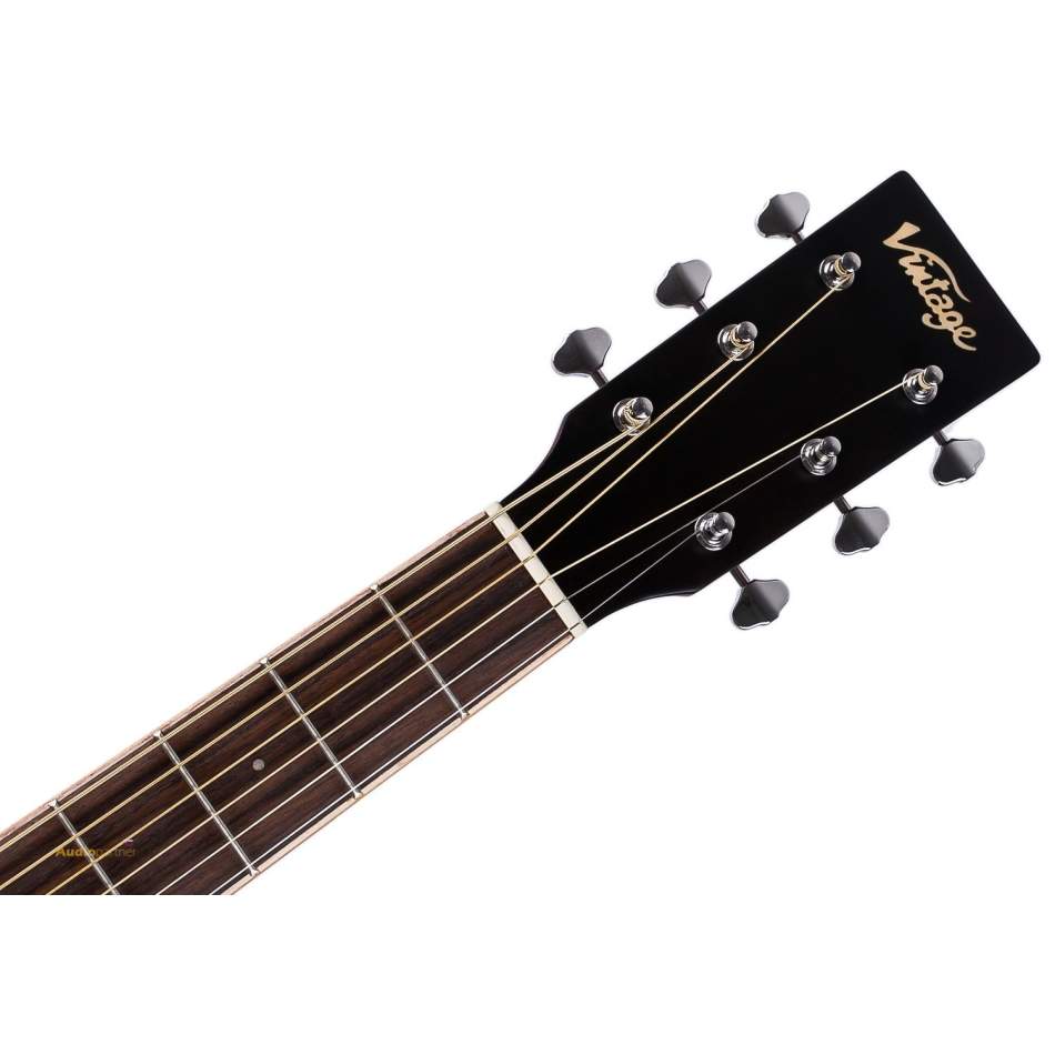 Akustická gitara Vintage V501 má tradičný westernový dizajn a vyznačuje sa masívnou prednou doskou vyrobenou zo smreku, ktorá je kombinovaná mahagónom použitým na luby a zadnú dosku. Ide o rokmi overenú kombináciu, ktorá produkuje vyvážený a znelý zvuk. Krk je vyrobený z dreva nato, na ktorom je nalepený palisandrový hmatník s 21 pražcami. Sedlo je vyrobené z materiálu NuBone ktoré má skvelé vlastnosti a skvelo prenáša vibrácie strún do tela gitary.