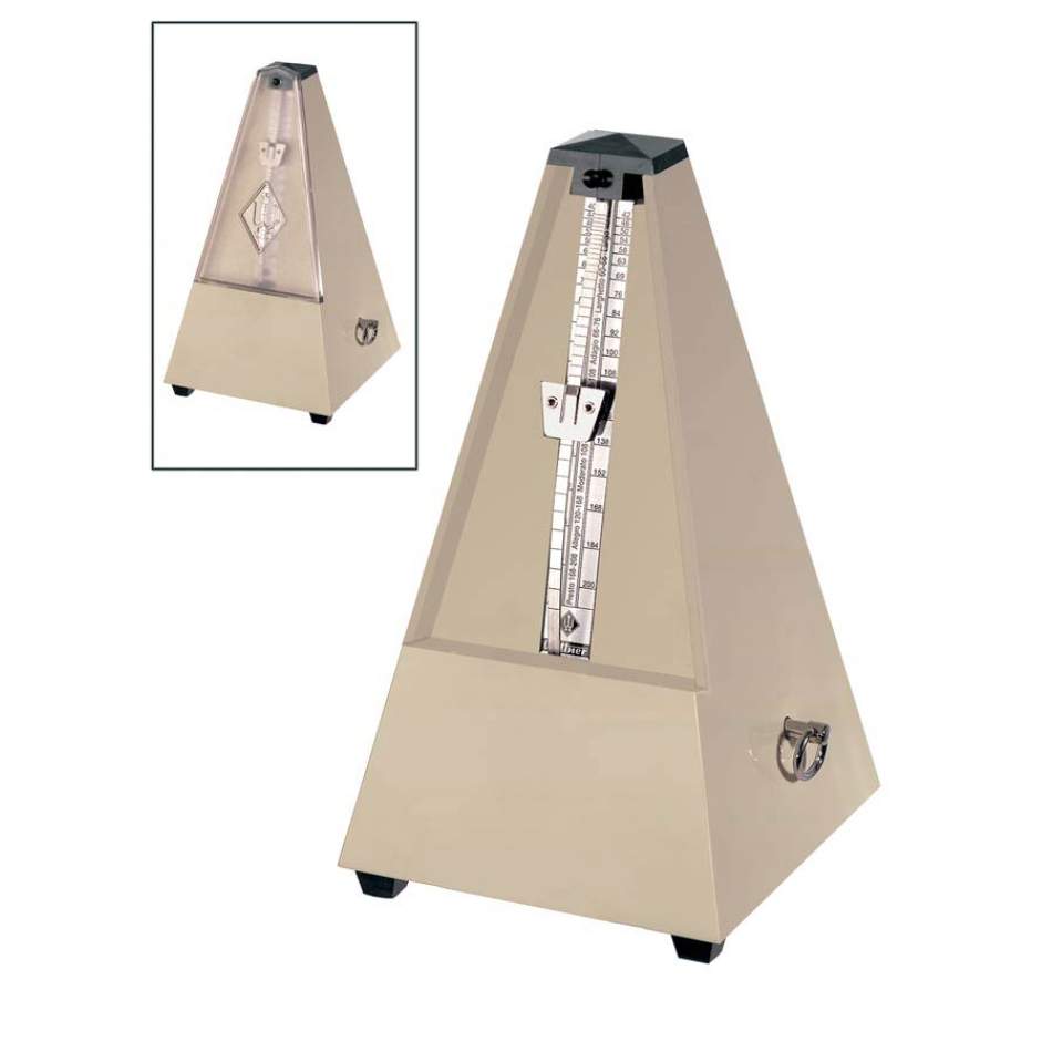 Metronóm, pyramídový tvar, plastový kryt, bez zvončeka, slonovinový